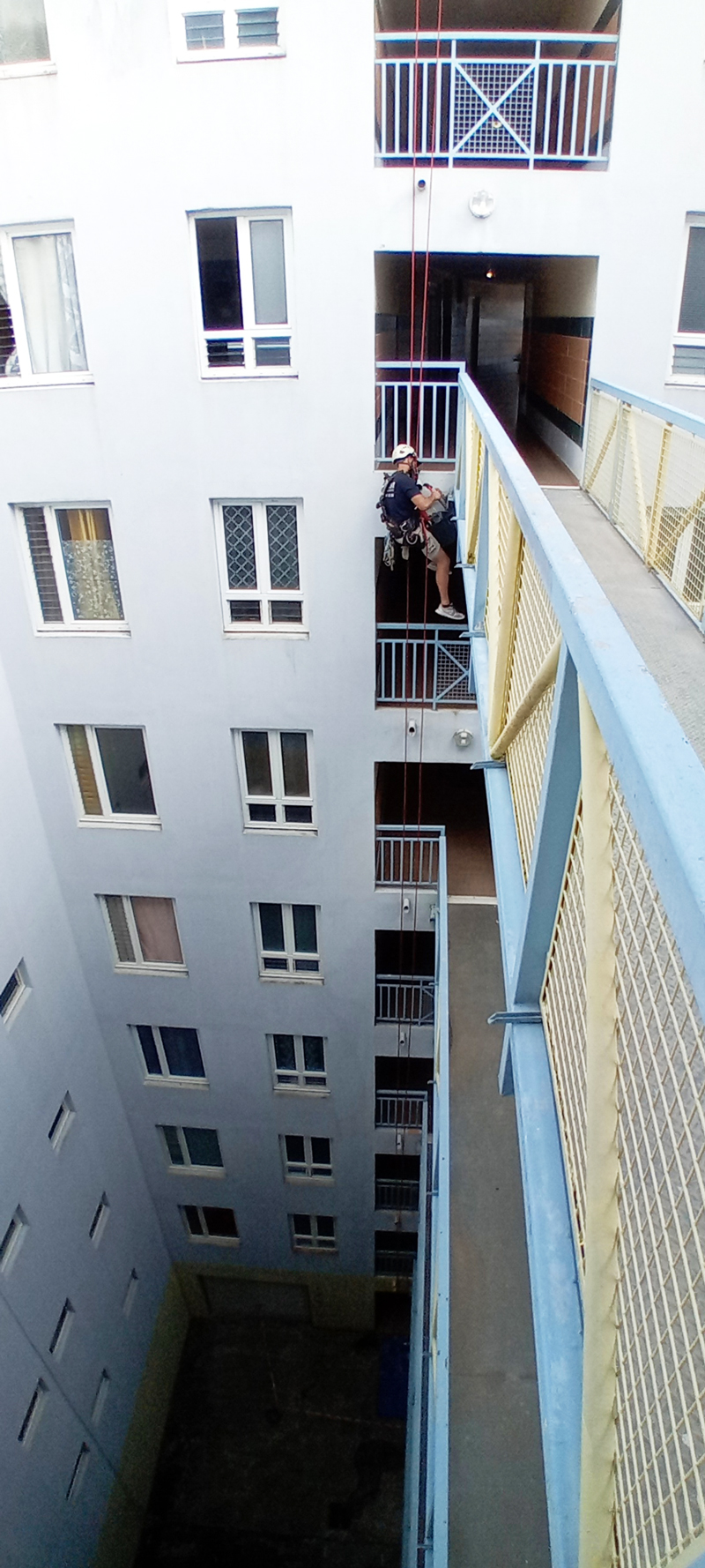 Contrairement aux échafaudages et aux nacelles, l’installation rapide de cordes et l’absence de contraintes d’espace permettent à nos cordistes d’intervenir rapidement, réduisant ainsi les délais d’exécution du chantier.